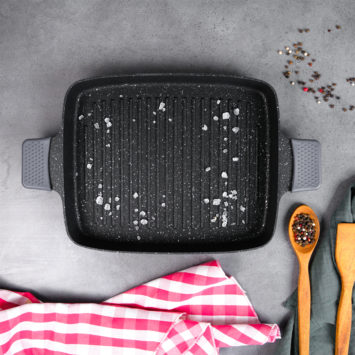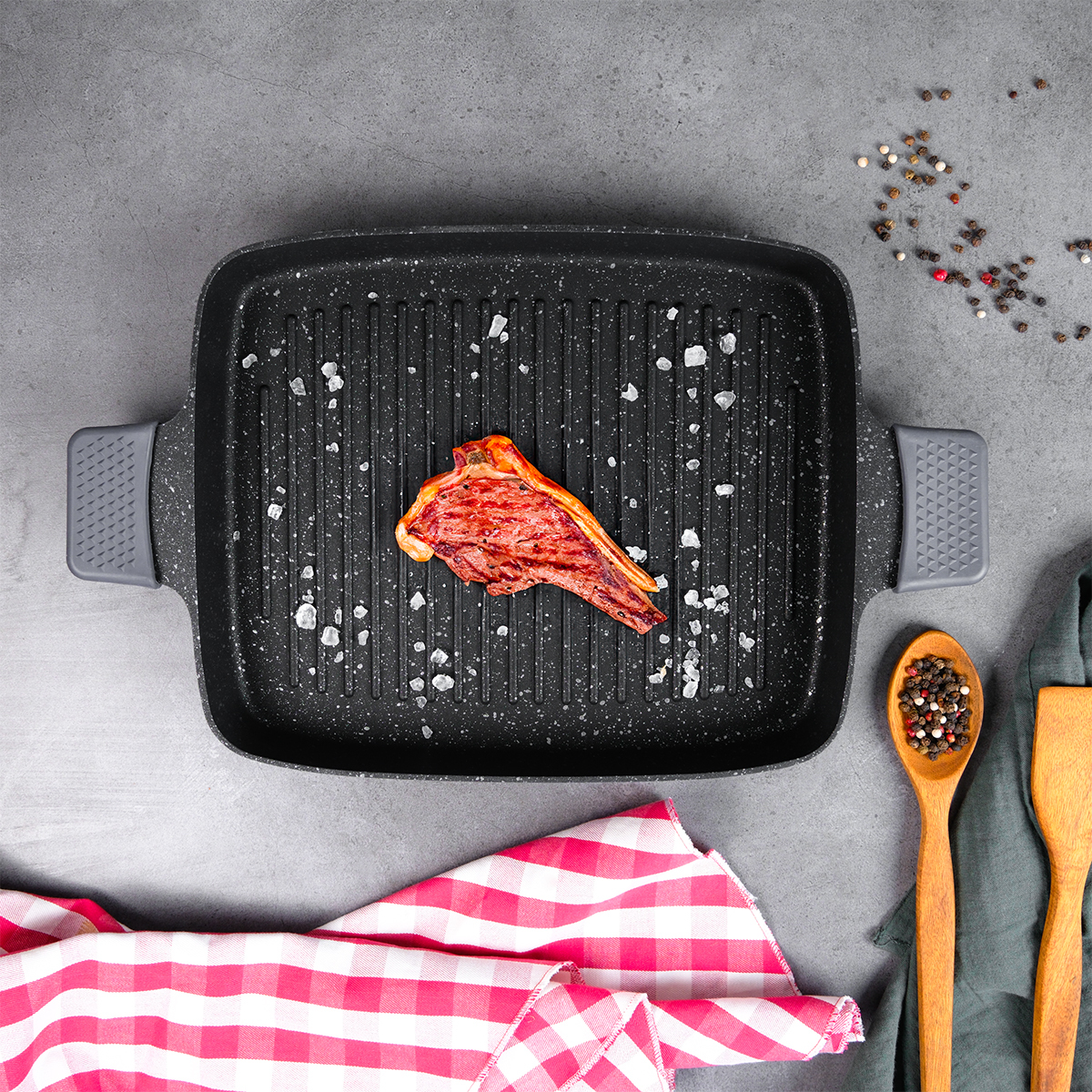 Aryıldız Pro-Grade Grill Tava, mutfağınızda ustalıkla hazırlanmış ızgara lezzetlerini kolayca yakalamanız için tasarlandı. 30x25 cm boyutundaki geniş yüzeyi sayesinde hem et, balık ve sebzeleri aynı anda pişirebilir hem de ızgara izleriyle görsel açıdan iştah açıcı sunumlar elde edebilirsiniz.