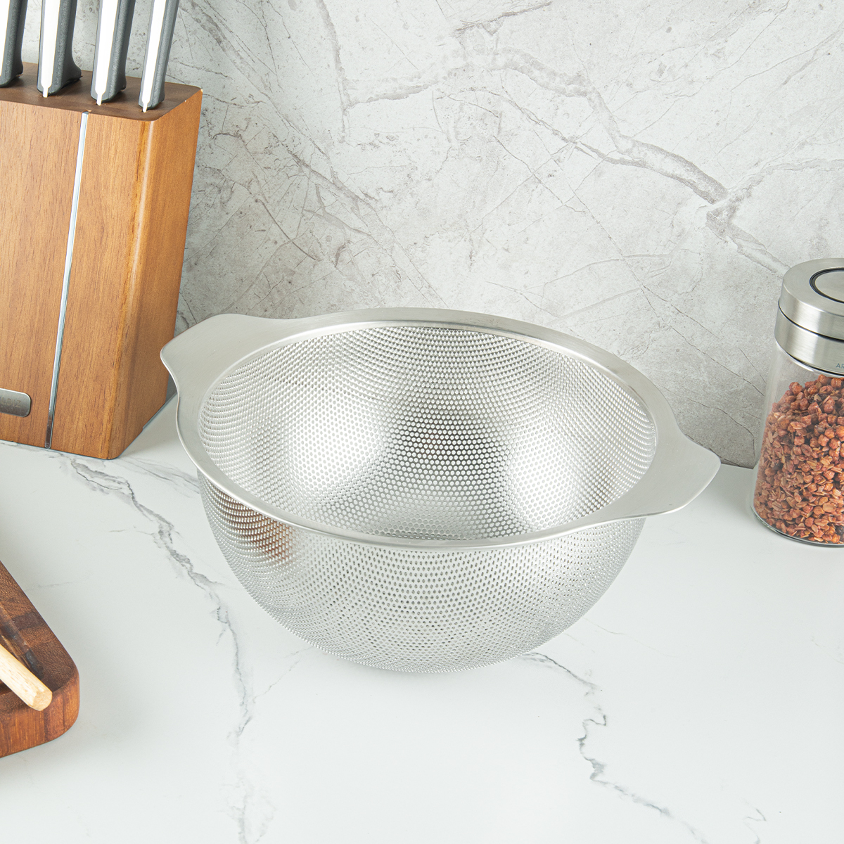 Paslanmaz çelikten üretilmiş olan bu süzgeç sepet, modern ve sade tasarımıyla her mutfağa uyum sağlar.
