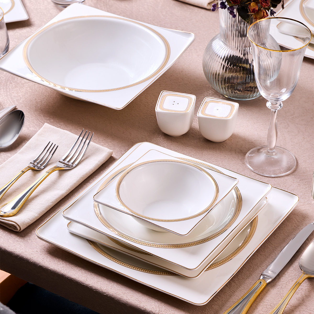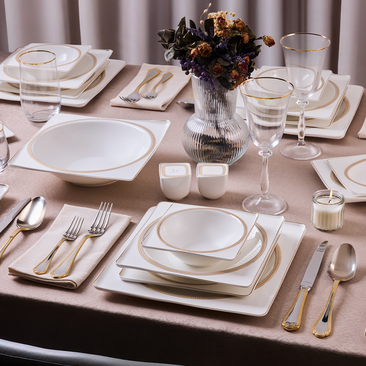 Gelince Haber VerZarafeti modern çizgilerle harmanlayan 56 Parça Yemek Takımı, geniş aile veya misafir ağırlamayı sevenler için tasarlanmış özel bir koleksiyondur.