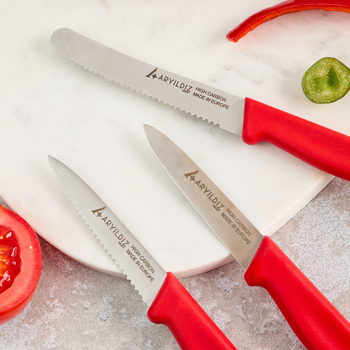 Aryıldız Solo 3 Parça Bıçak Seti kırmızı