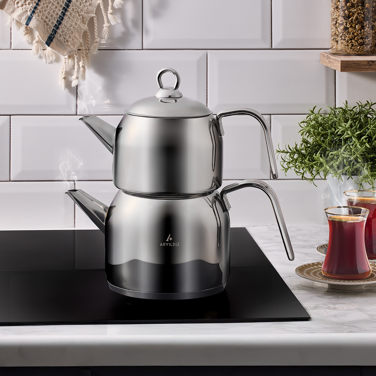 Aryıldız Çaydanlık takımları paslanmaz çelik gövdeden üretilen özel tasarımlara sahiptir.