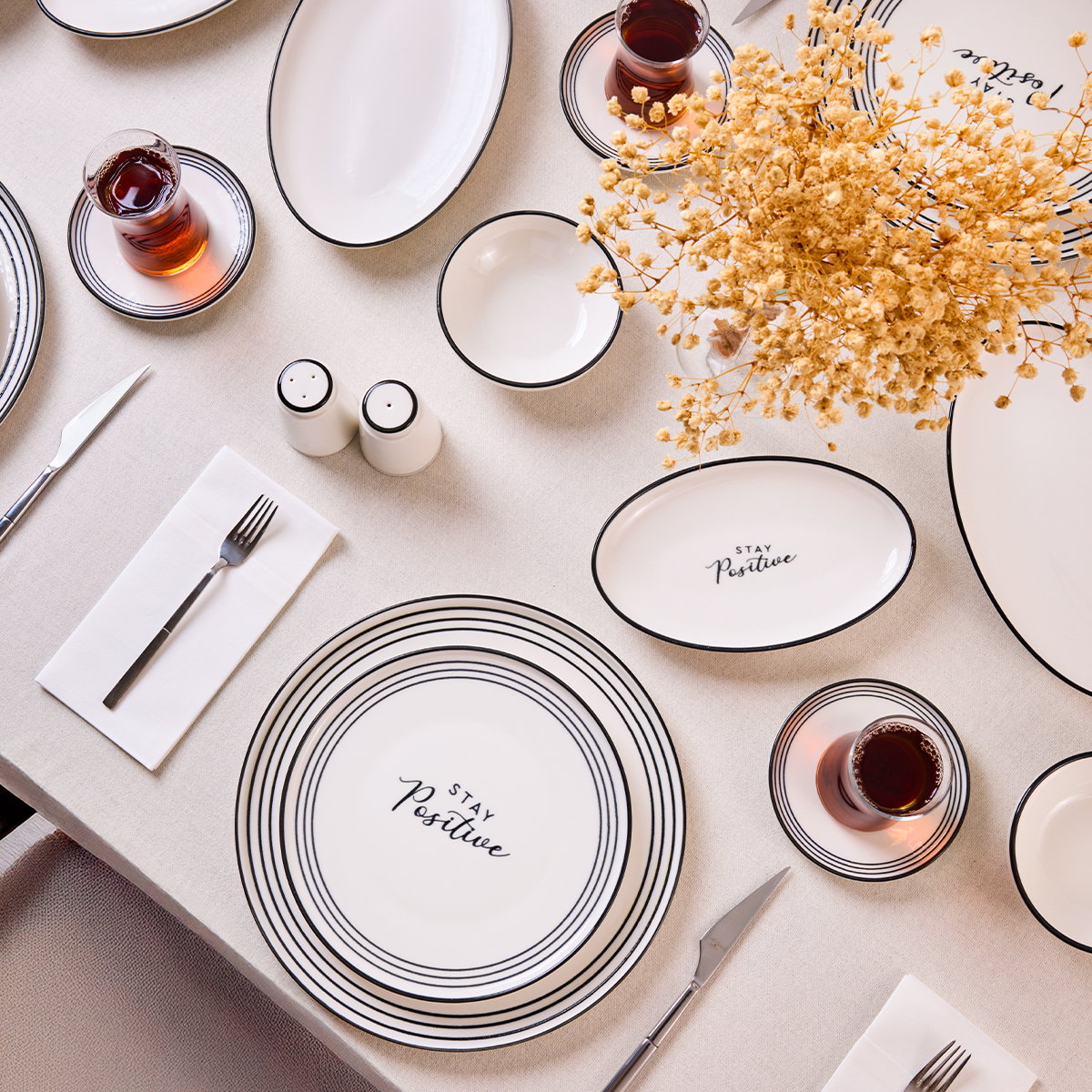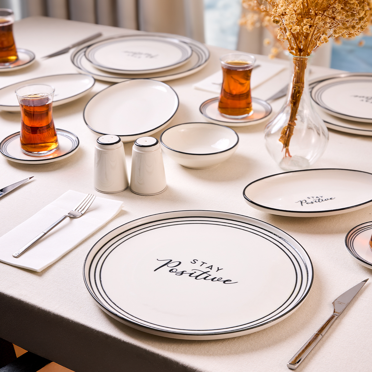 Aryıldız Stay Positive 34 Parça Kahvaltı Takımı, sofralarınıza sadece lezzet değil, aynı zamanda mutluluk ve enerji katmak için tasarlandı. Zarif çizgileri, modern formu ve ilham veren detaylarıyla her kahvaltıyı özel bir ana dönüştürür.
