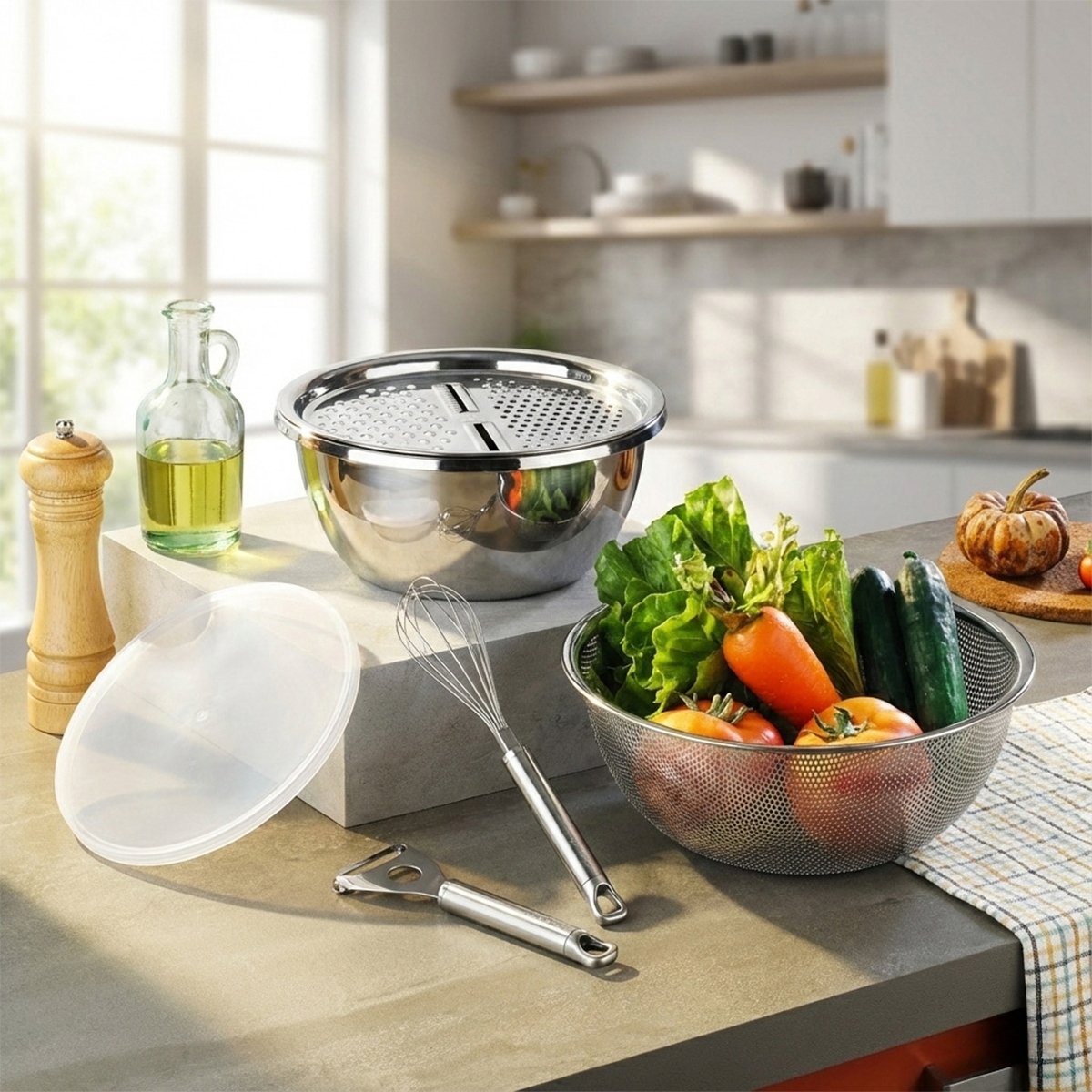 Gelince Haber VerMutfakta hazırlık sürecini hızlandıran, fonksiyonelliğiyle fark yaratan Aryıldız Steel Master 6 Parça Mutfak Hazırlık Seti, dayanıklı paslanmaz çelik yapısı ve çok amaçlı kullanımıyla hem ev hem de profesyonel mutfaklar için ideal bir çözümdür. Tek bir set ile soyma, rendeleme, süzme, karıştırma, çırpma ve saklama işlemlerini kolayca gerçekleştirebilirsiniz.