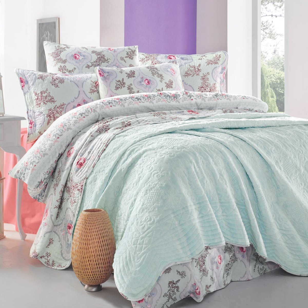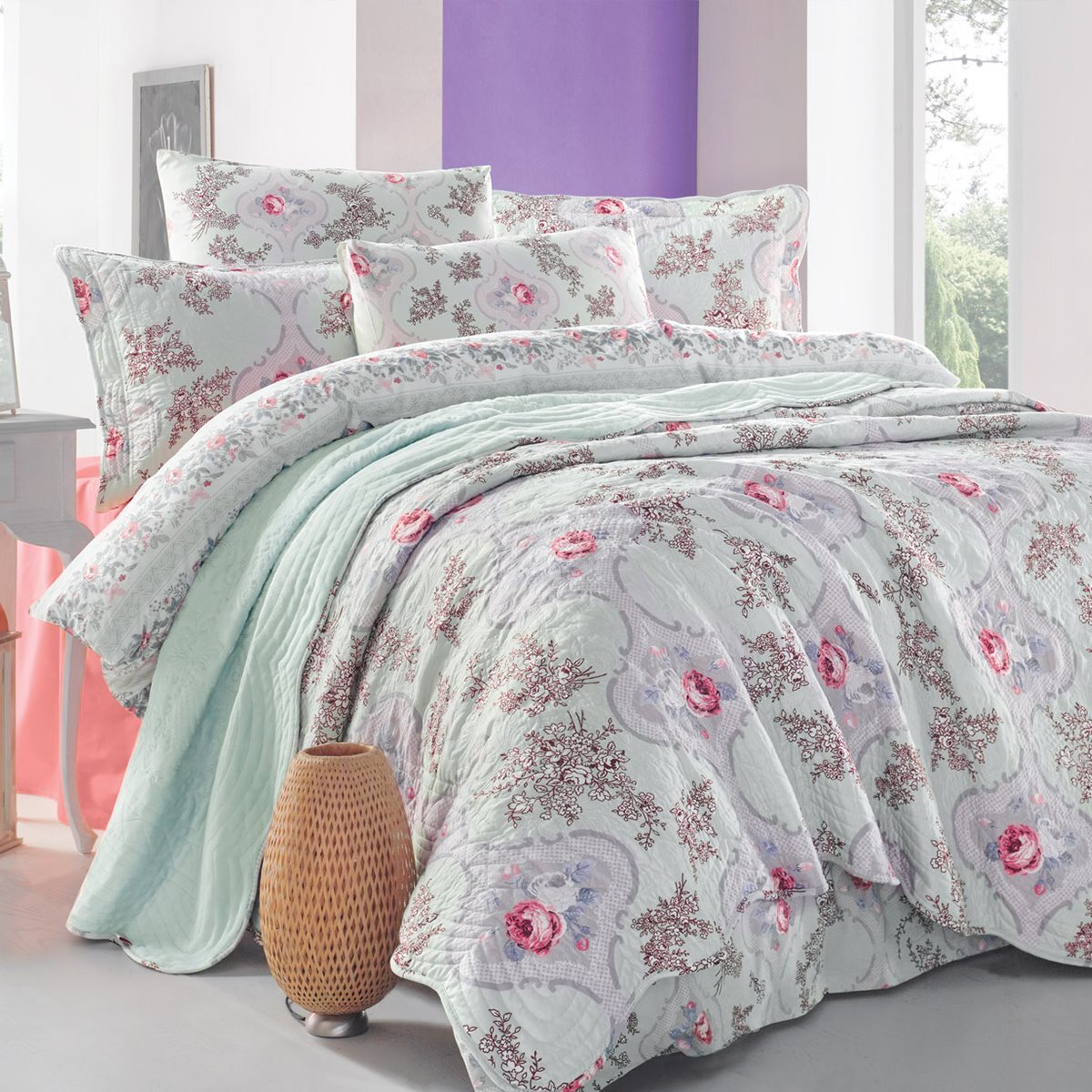 Çift taraflı bir yüzü %100 pamuk baskılı, diğer yüzü kadife nakışlı.
