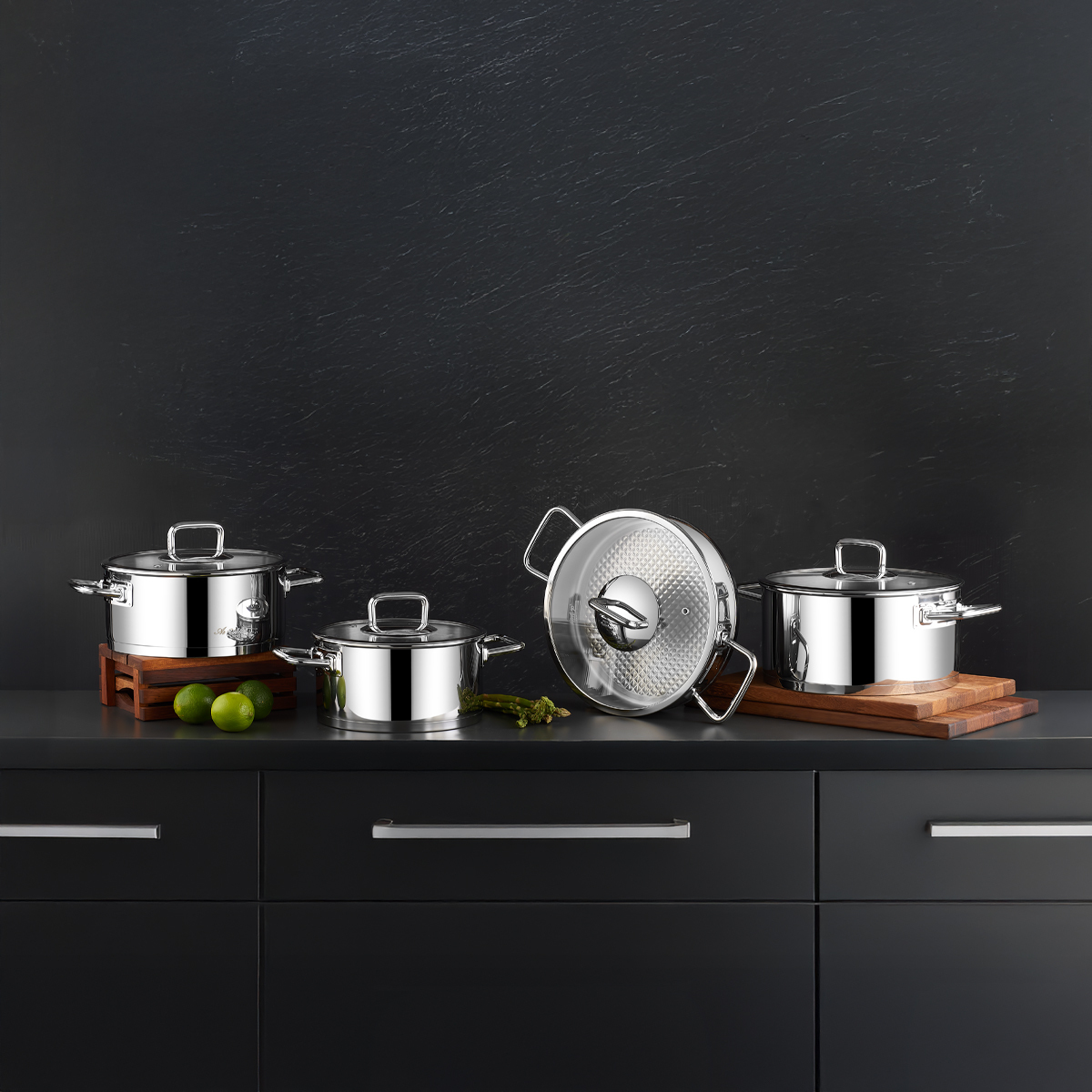 Yüksek kaliteli çelikten üretilen tencereler, hem şık tasarımı hem de dayanıklı yapısıyla mutfağınızın vazgeçilmezi olmaya adaydır.