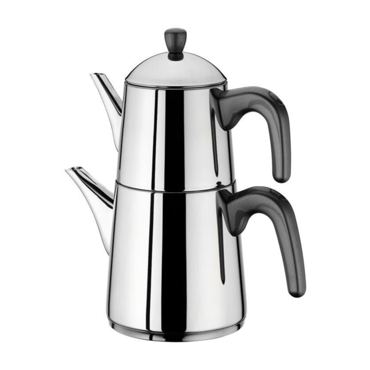 Ürün Malzemesi : Çelik çaydanlık setleri tüm dünyada mutfak sektöründe tercih edilen 1.kalite paslanmaz çelikten imal edilmiştir.Bu çelik AISI 304 standartlarında içinde %18 Cr %10 Ni barındırır.Korozyona dayanımı çok yüksek olan malzeme (kaplama yapılmadan) özel polisaj işlemi ile ayna parlaklığında yüzeyler sağlar.Çaydanlık tabanı ise indüksiyonlu ocaklara uyumlu AISI 430 kalite paslanmaz çelikten üretilmiştir.Tabanda termal ısı yayılımı ve muhafazası >için saflık derecesi %99,60 olan etial 6 normunda 5 mm alüminyum disk kullanılmaktadır.Kulplar modeline göre paslanmaz çelik,bakalit veya melamin malzemeden imal edilmiştir.