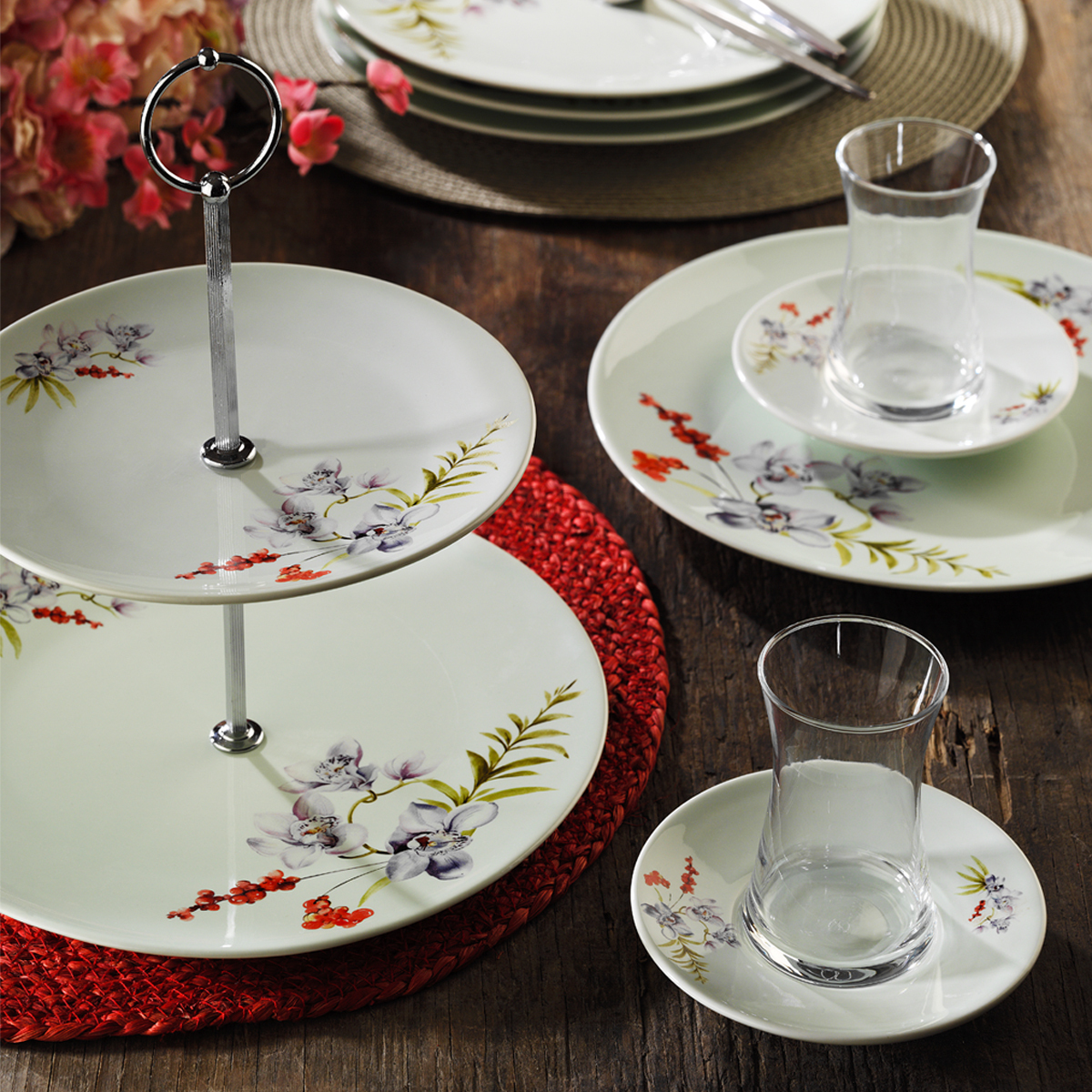 Gelince Haber VerSet içeriğinde bulunan katlu kurabiyelik ile tatlılarınızı sergileyebilir, 6 adet pasta tabağı ile misafirlerinize benzersiz sunumlar hazırlayabilirsiniz.