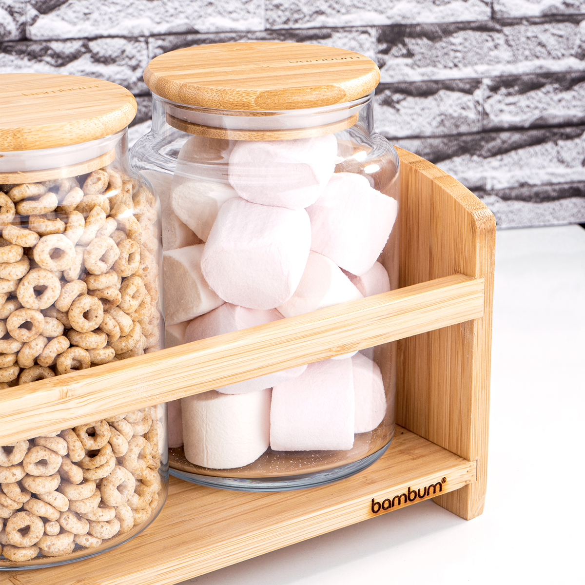 Bambum Bench Standlı Saklama Kabı zarif duruşu ile mutfağınıza şık bir görünüm katacak.