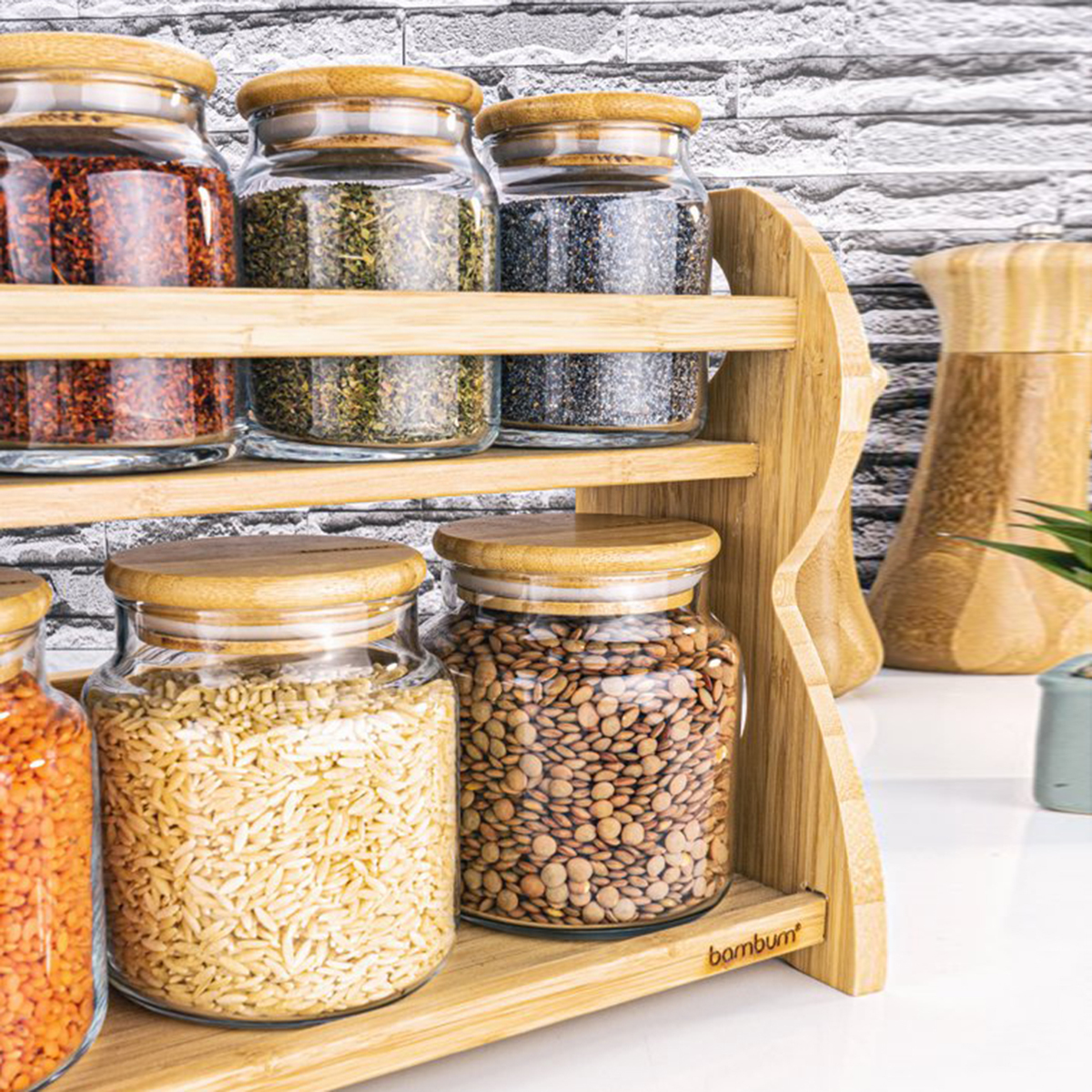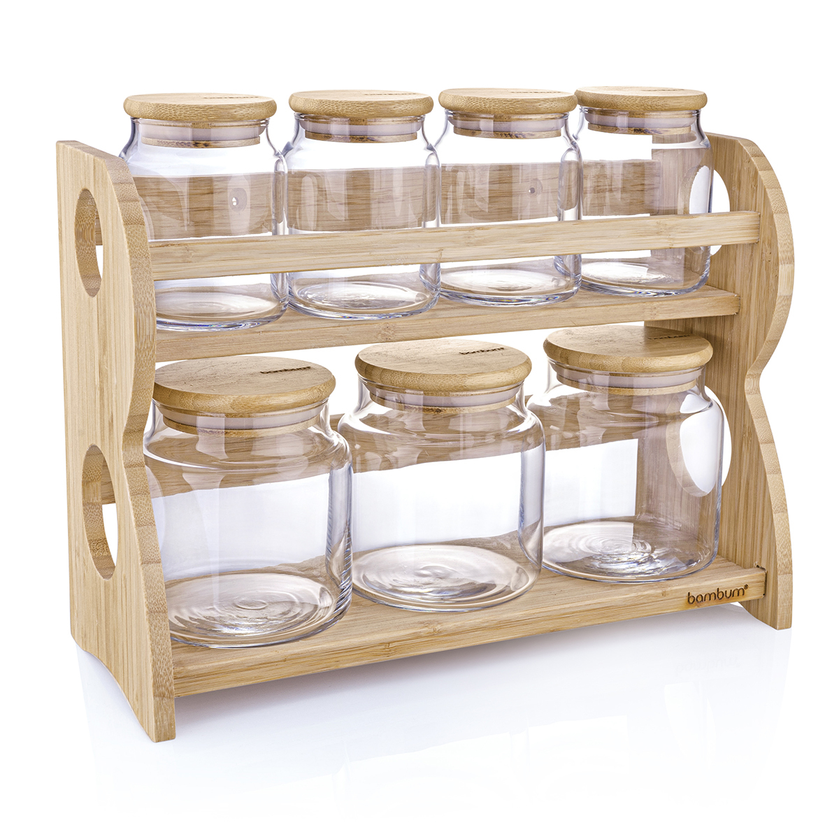 Bambum Bench 8 Parça 2 Katlı Standlı Baharatlık Seti zarif duruşu ile mutfağınıza şık bir görünüm katacak.