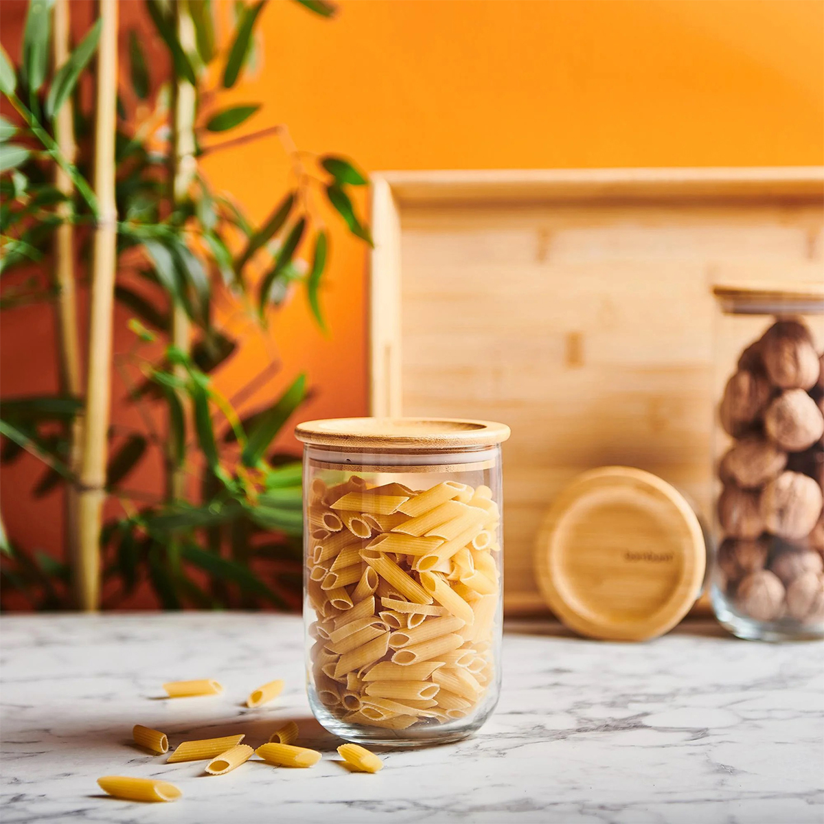 Gelince Haber VerBambum Duo Cam Saklama Kabı zarif duruşu ile mutfağınıza şık bir görünüm katacak.