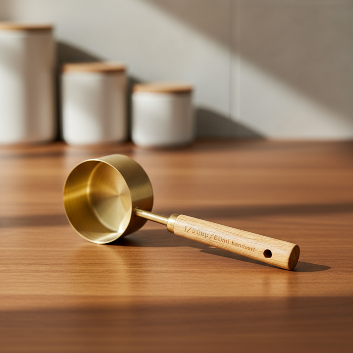 Fonksiyonel yapısı ve sade tasarımıyla Bambum Escala Ahşap Saplı Ölçek Kabı – 80 ml, mutfakta ölçü almayı kolaylaştıran şık bir tamamlayıcıdır.