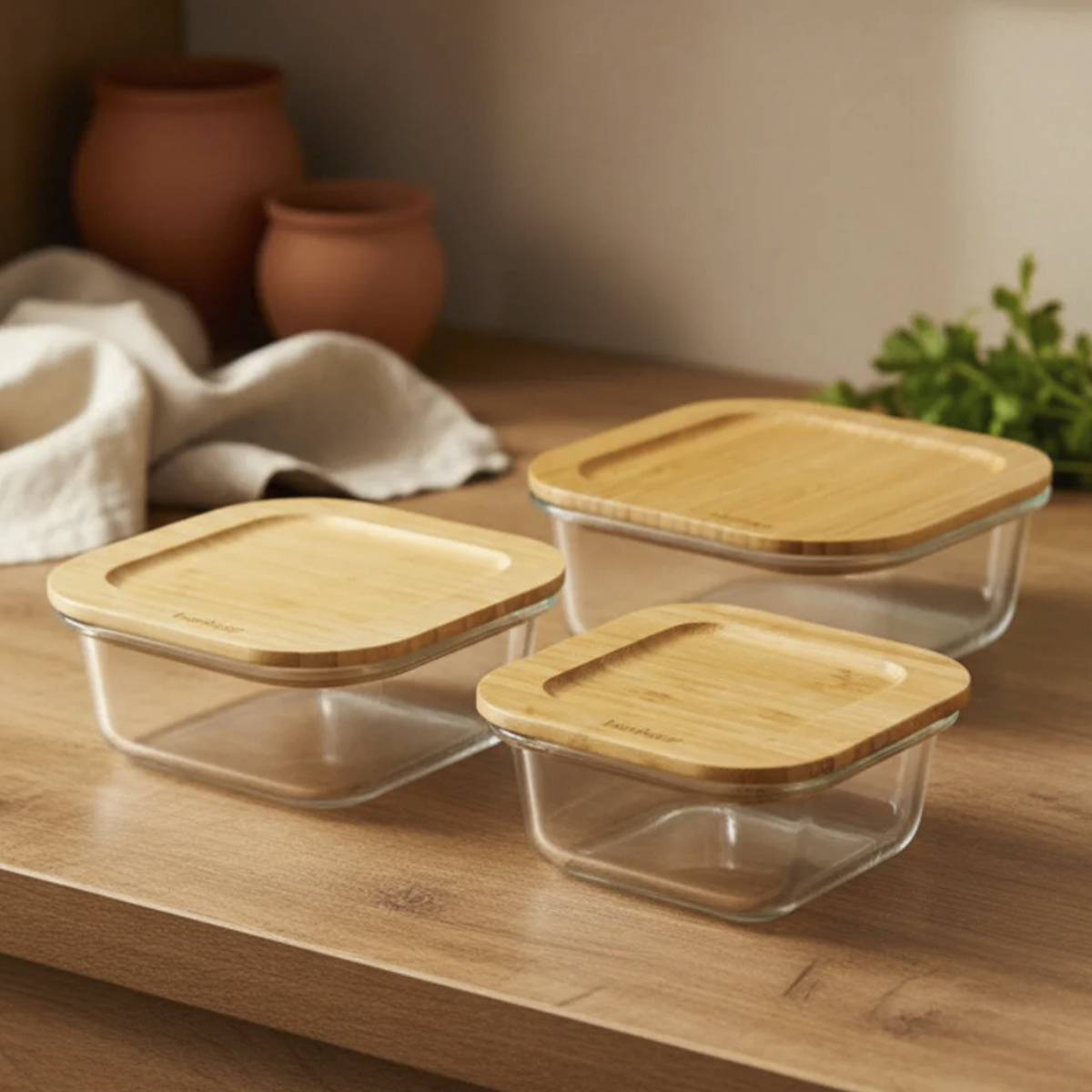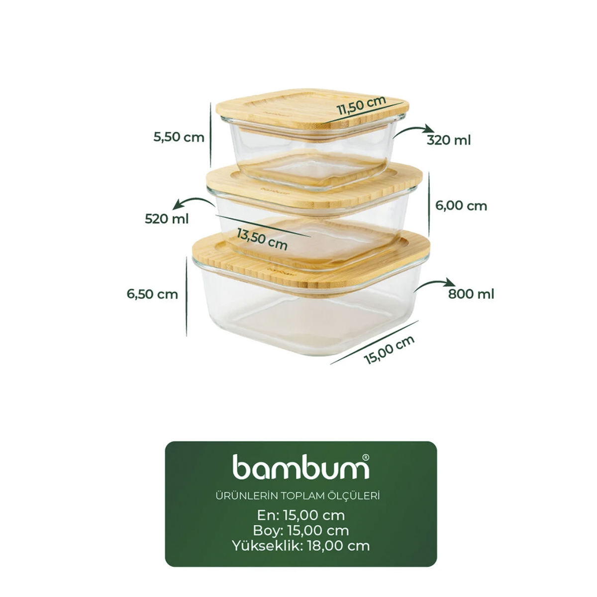 Gelince Haber VerLavi kare 3'lü set Bambum lavi cam saklama kabı, türkiye’de bir ilk.