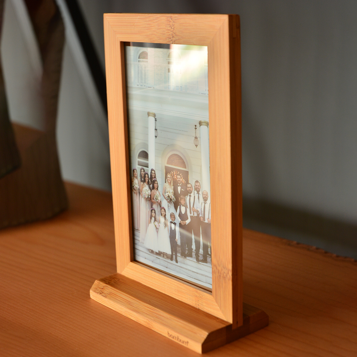 Masif bambudan oyma işlemiyle üretilen Marcos çerçeve şık ve zarif duruşu ile ailenizin ve güzel anılarınızı hayatınızın her yerinde sevdiklerinizle paylaşmanıza yardımcı olacak.