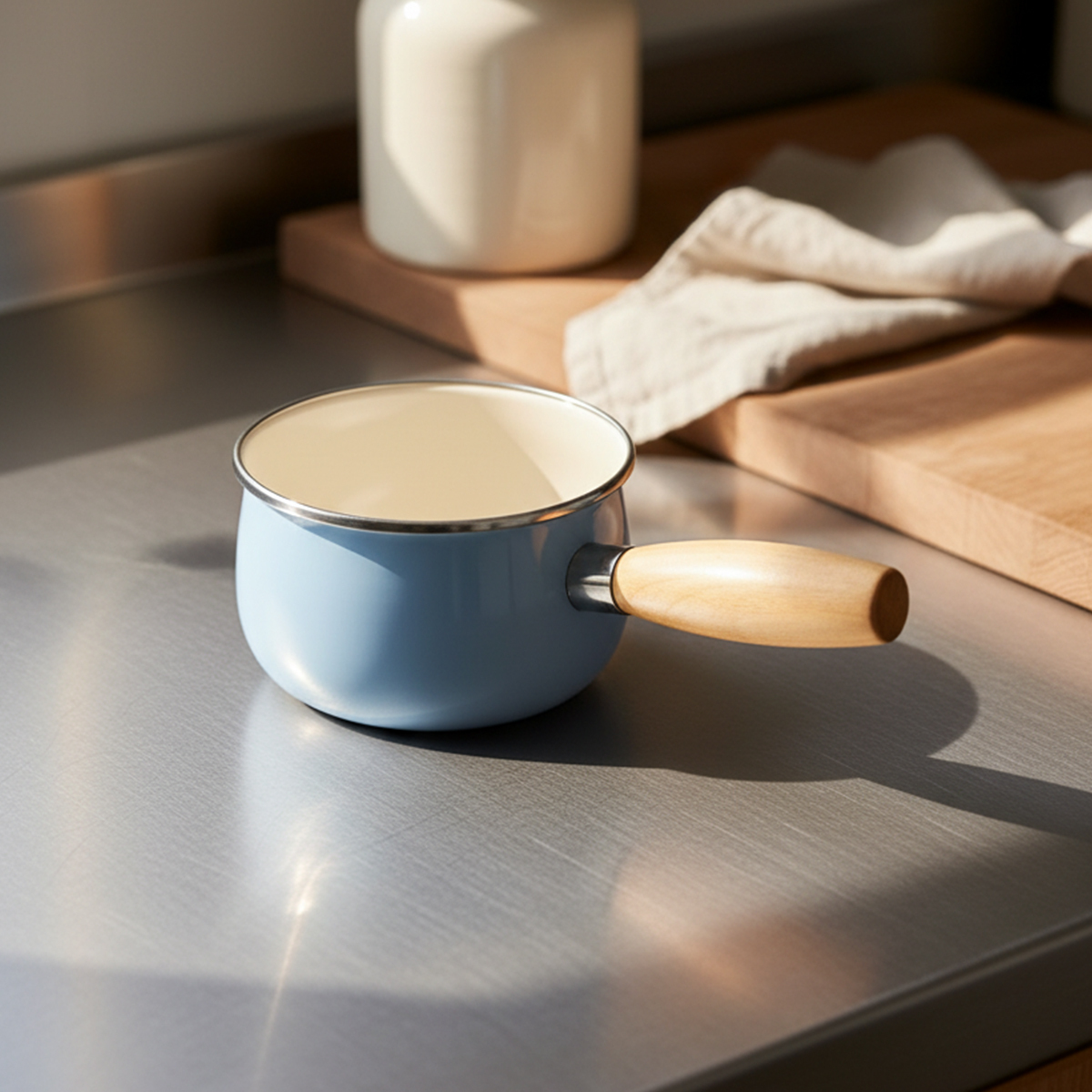 Sos hazırlama, süt ısıtma, çikolata veya tereyağı eritme gibi işlemler için uygun olan bu tava; nostaljik tasarımı ve modern mavi tonu sayesinde mutfakta hem şık hem de işlevsel bir yardımcıdır.