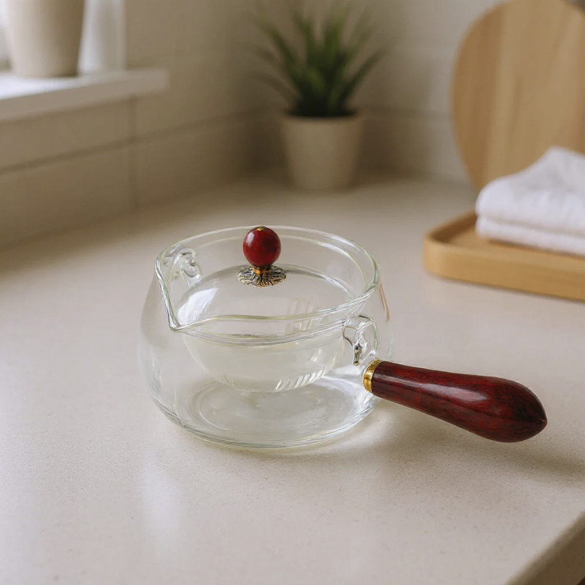 Bambum Shen Ahşap Saplı Cam Demlik, mutfak dekorasyonunuza doğal bir dokunuş katar.