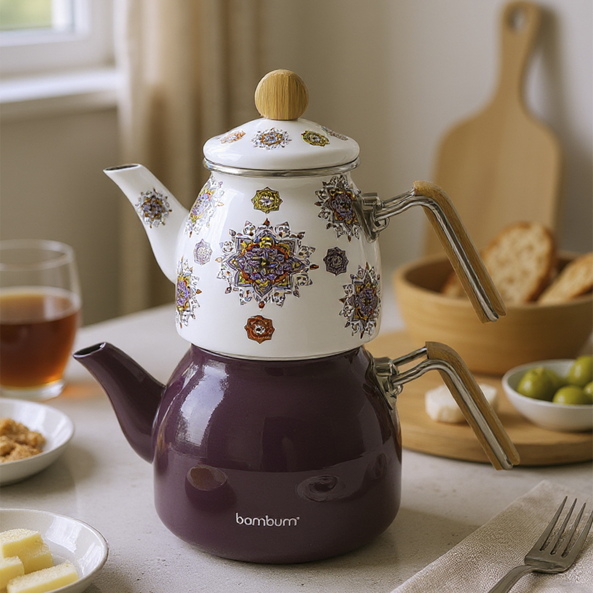 Bambum Taşev Unique Emaye Çaydanlık Mor