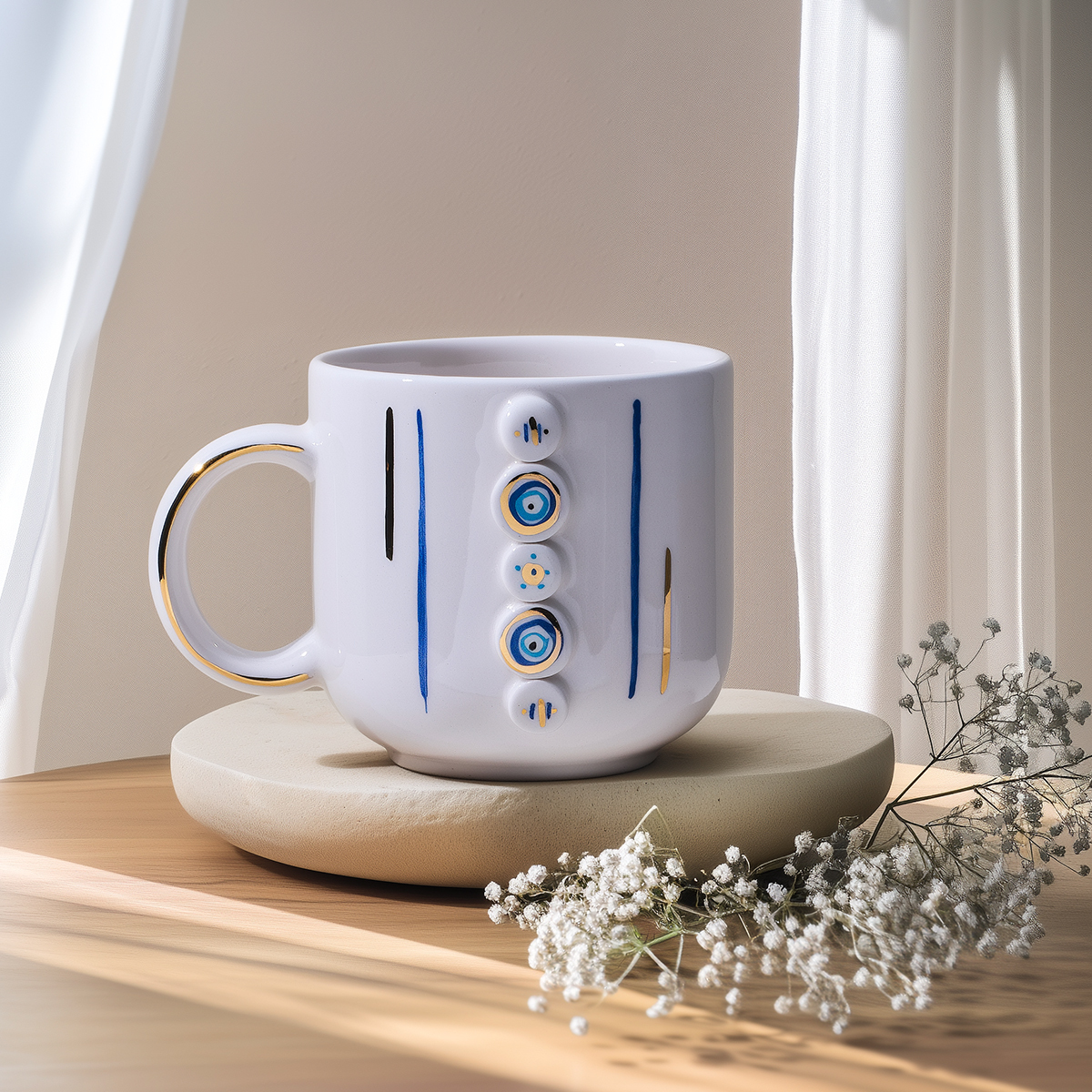 Gelince Haber VerCanarels’in modern dokunuşla yeniden yorumladığı Nazar Boncuğu teması, şimdi 350 ml hacmindeki bu şık kupa ile günlük yaşamınıza hem anlam hem de stil katıyor.