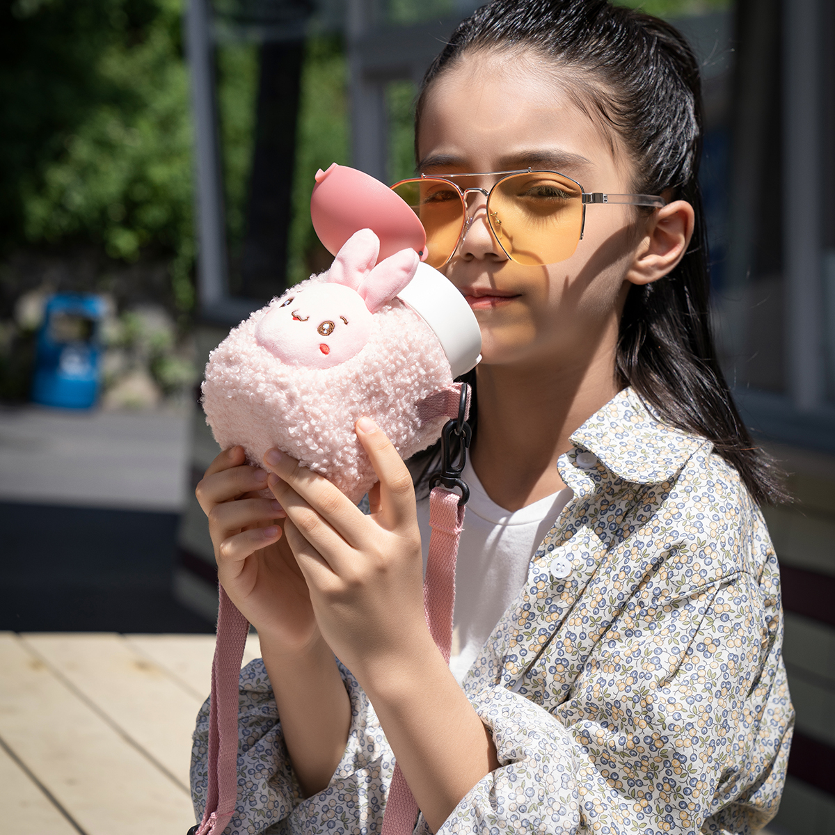 Özel üretilmiş kaliteli peluş kılıf hem çok tatlı bir görünüme sahip hemde darbelere ve çizilmelere karşı termosu korumaktadır hem de kılıfa takılabilen boyun askısı sayesinde çocuklarınız termosu zahmetsiz taşıyabilecektir.