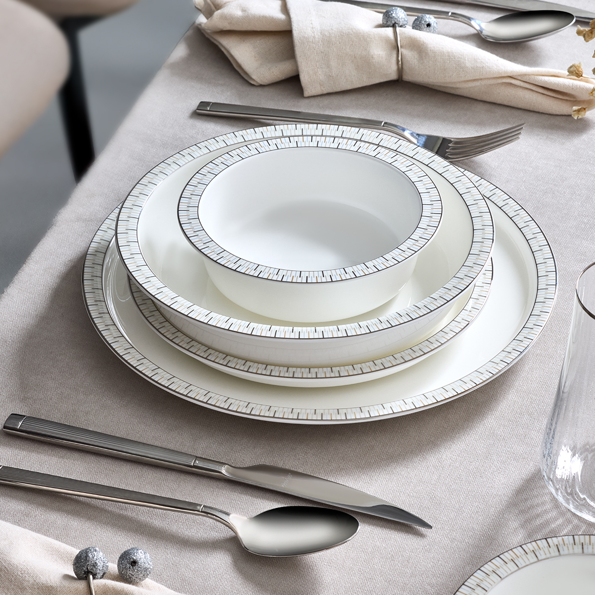 Gelince Haber VerEvaliza Alaia Stella Platin 60 Parça Yemek Takımı, modern çizgileri ve platin detaylarıyla sofralarınıza lüks bir şıklık katar.