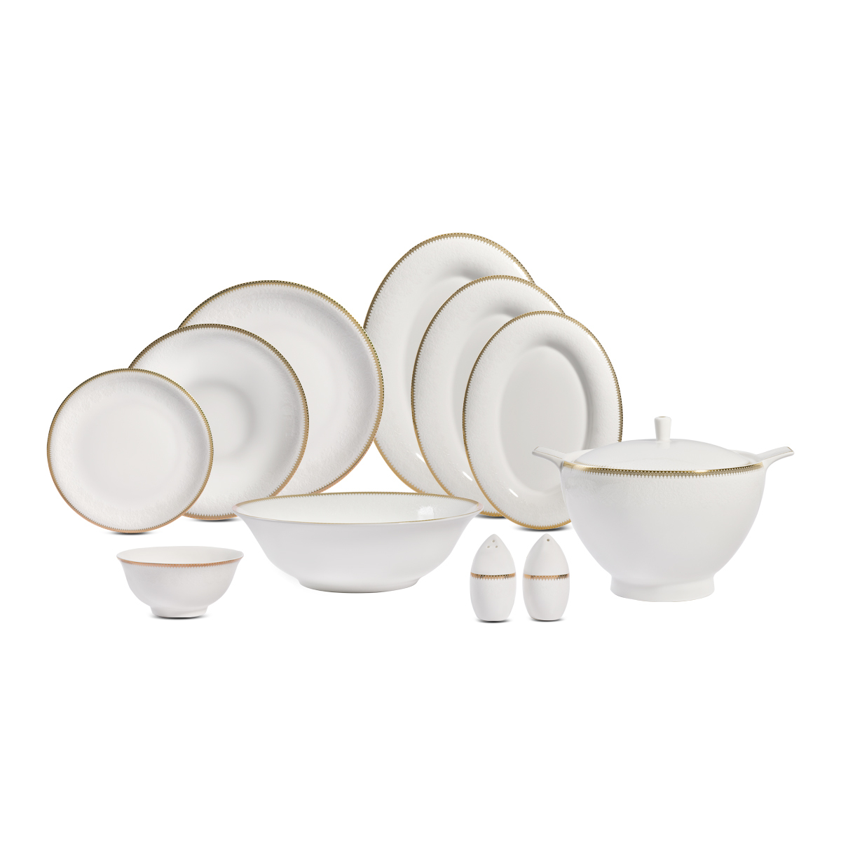 İnce işlenmiş altın bordürleri, parlak porselen yüzeyi ve sofistike hatlarıyla Buckingham saray ihtişamını sofranıza taşır.