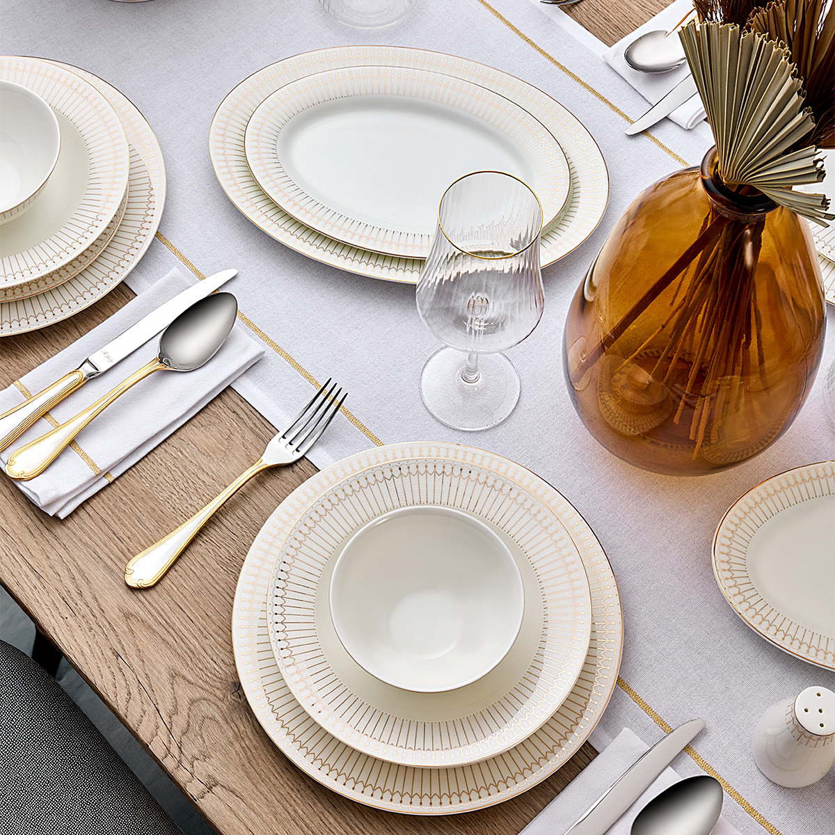 Evaliza Charm Gold yemek takımını düğün, davet, bayram ve özel gün sofralarında kullanarak sofralarınıza lüks bir dokunuş katabilirsiniz.