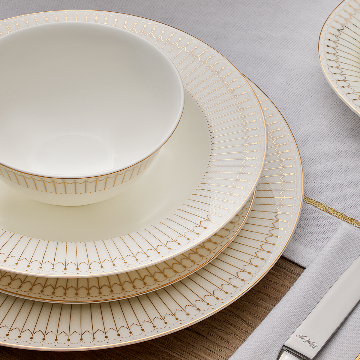Altın Detaylı Tasarım: Şık ve göz alıcı sofralar için ideal.
