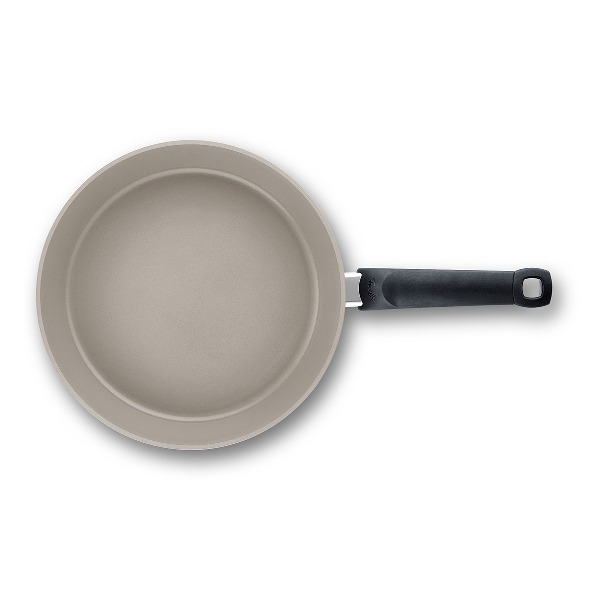 Kolay, karışıklık yaratmayan karıştırma ve döndürme için yüksek kenarlı ve ekstra geniş kızartma yüzeyli Fissler Comfort tava gövdesi.