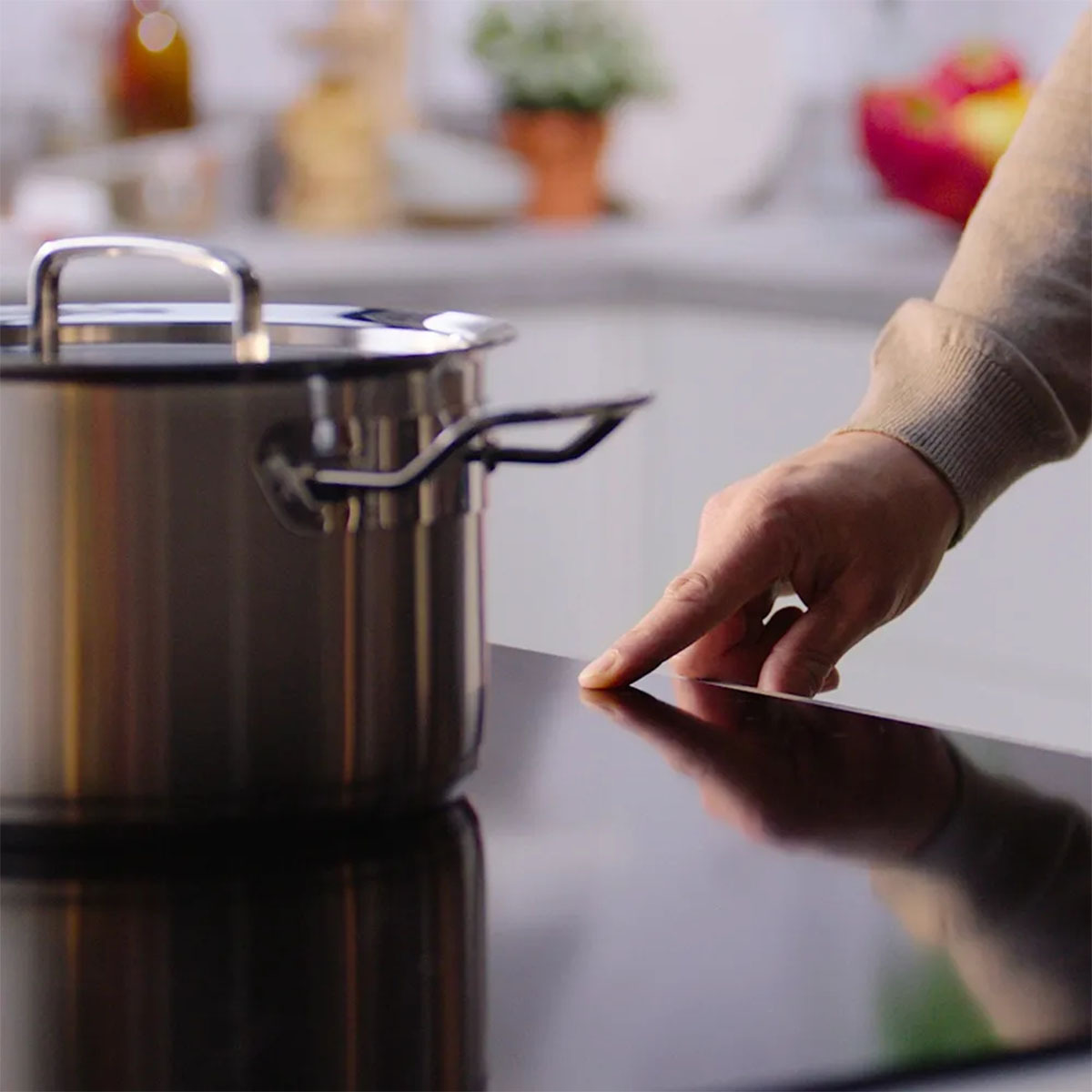 Cilalı paslanmaz çelikten yapılmış geniş ve rahat kulplar her zaman serin kalır ve pişirme kabının saten kaplamasını güzelce tamamlar.