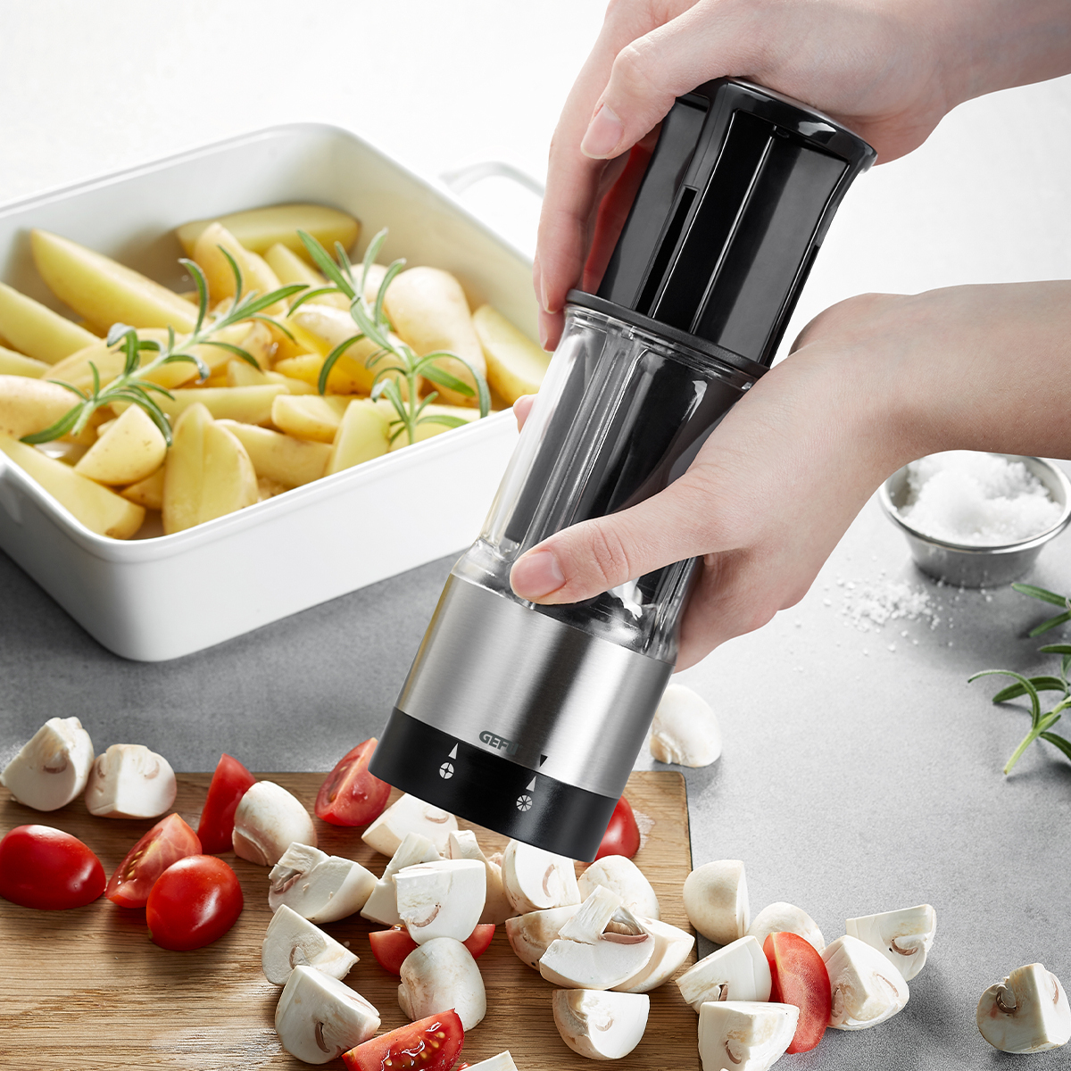 Merkezleme aparatı, dar meyve ve sebzelerin mükemmel şekilde kesilmesini sağlar ve piston üzerindeki işaret, uzun sebzeleri keserken büyük bir yardımcıdır.