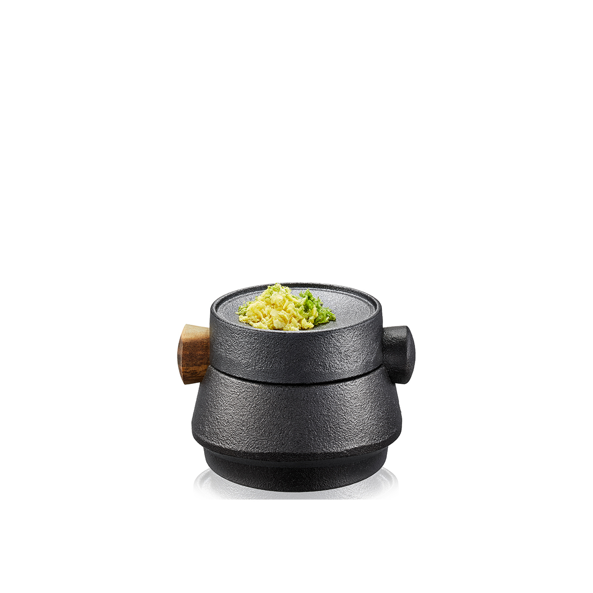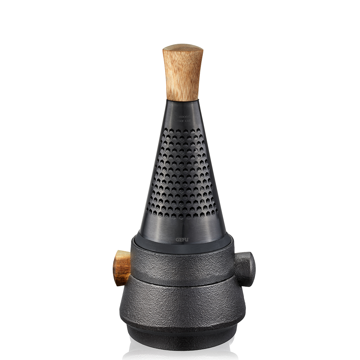 Set, sağlam bir dökme demir havan, dökme demir kapak ve üstte koni şeklinde bir rendeden oluşuyor.