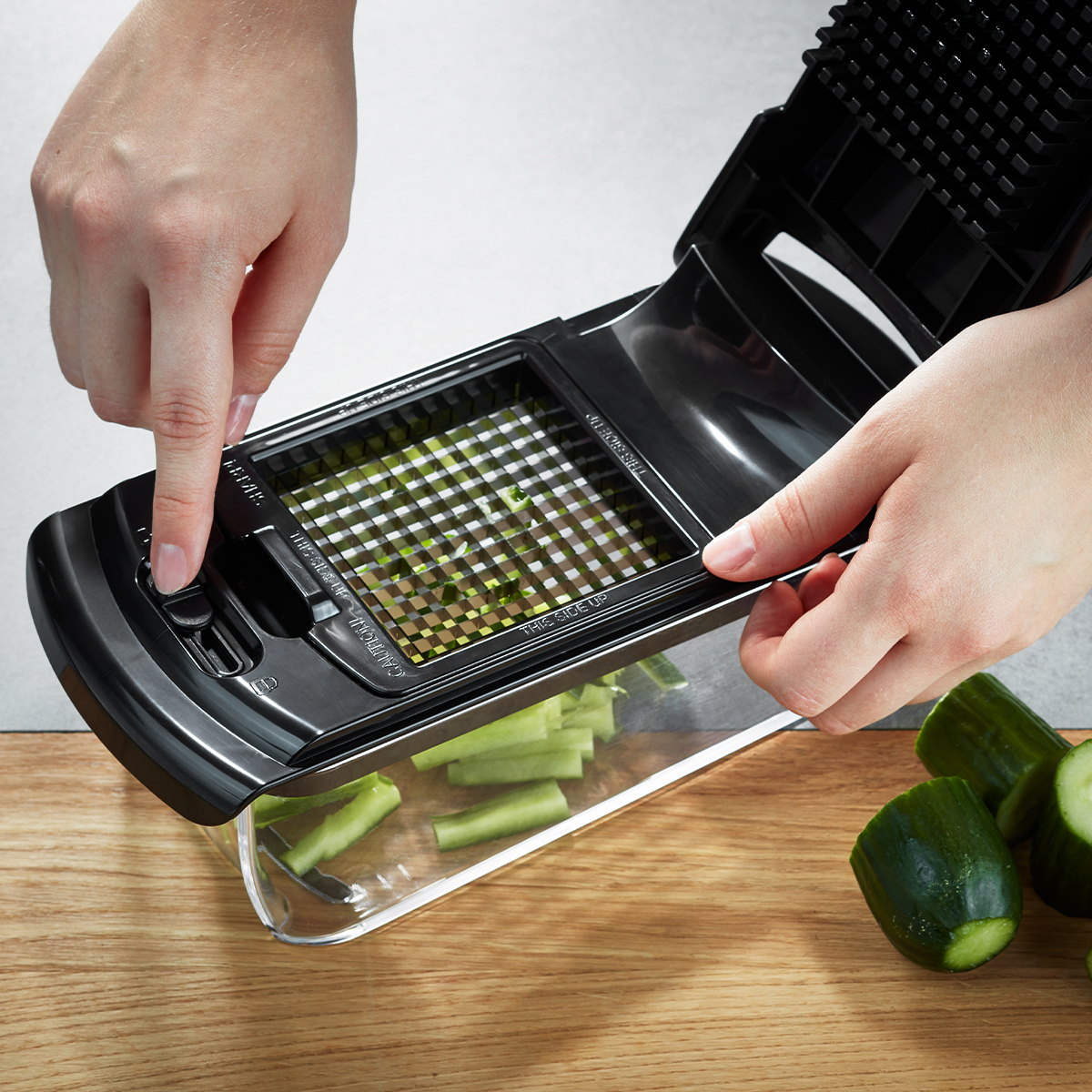 Ekstra keskin bıçak uçları, kesmeyi zahmetsiz hale getirir ve sağlıklı çiğ gıdalar veya iri taneli çorbalar için ince bir kesimden patates kızartması veya lezzetli güveçler için kaba bir kesime kadar tutarlı sonuçlar üretir.