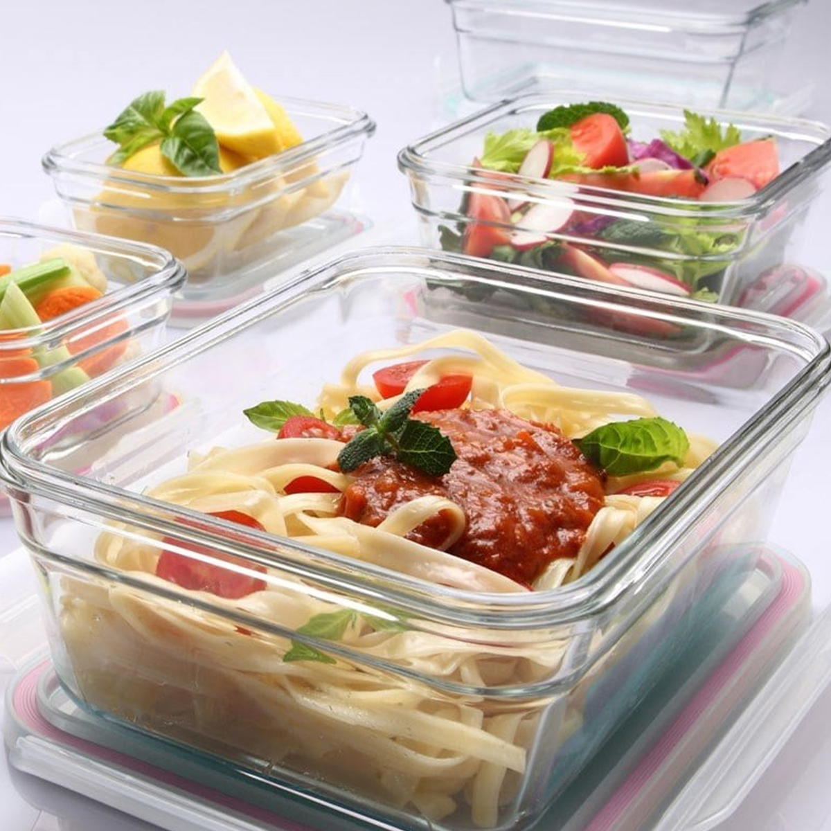 Mutfaklarda farklı ihtiyaçlara cevap verebilen bu Glasslock saklama kapları boyutları ve tasarımları ile mutfak raf ve dolaplarınızda da bile saklama kabı görevi görürler.
