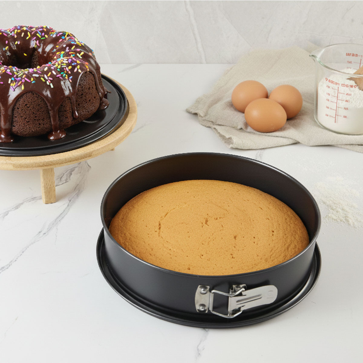 Çift Taban Tasarımı: Keklerin kolay çıkarılması için pratik ve güvenli yapı sunar.