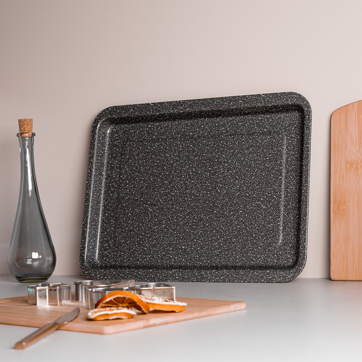 Zamanla oluşabilecek korozyon veya deformasyonu önlemek için dayanıklı, temizlenmesi kolay yapışmaz bir yüzeye ve kalın bir tabana sahiptir.