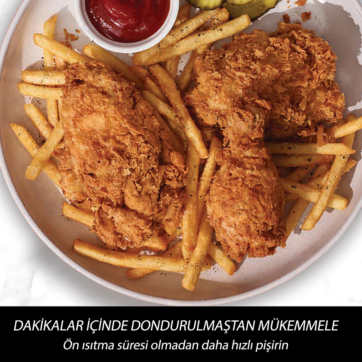 %95'e kadar daha az yağ ile o derin yağda kızartılmış tadı ve dokuyu elde edin.