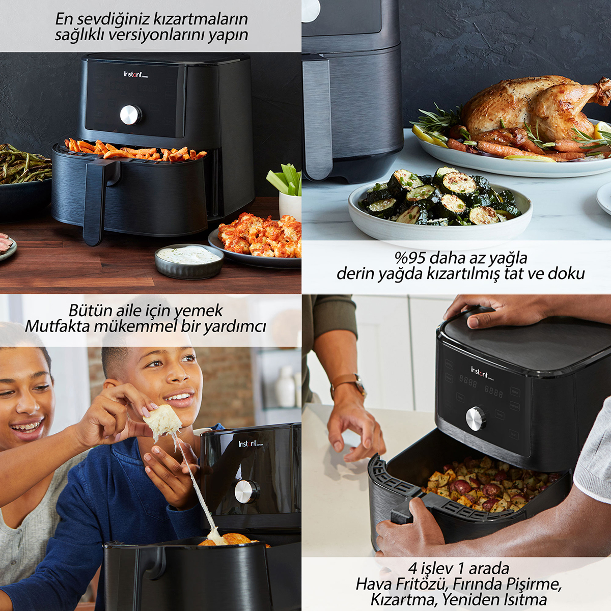 - Anında Vortex Hava Fritözü, derin kızartmaya daha sağlıklı, kullanışlı bir alternatif ve ayrıca kızartma, fırında pişirme ve yeniden ısıtma çok yönlülüğü sunar. En sevdiğiniz kızarmış yiyeceklerin daha sağlıklı versiyonlarını oluşturabilirsiniz. Taze veya donmuş yiyecekler, yağın bir kısmı ve derin kızartma kullanılarak kusursuz ve suçluluk duymadan çıtır çıtır hale getirilir.