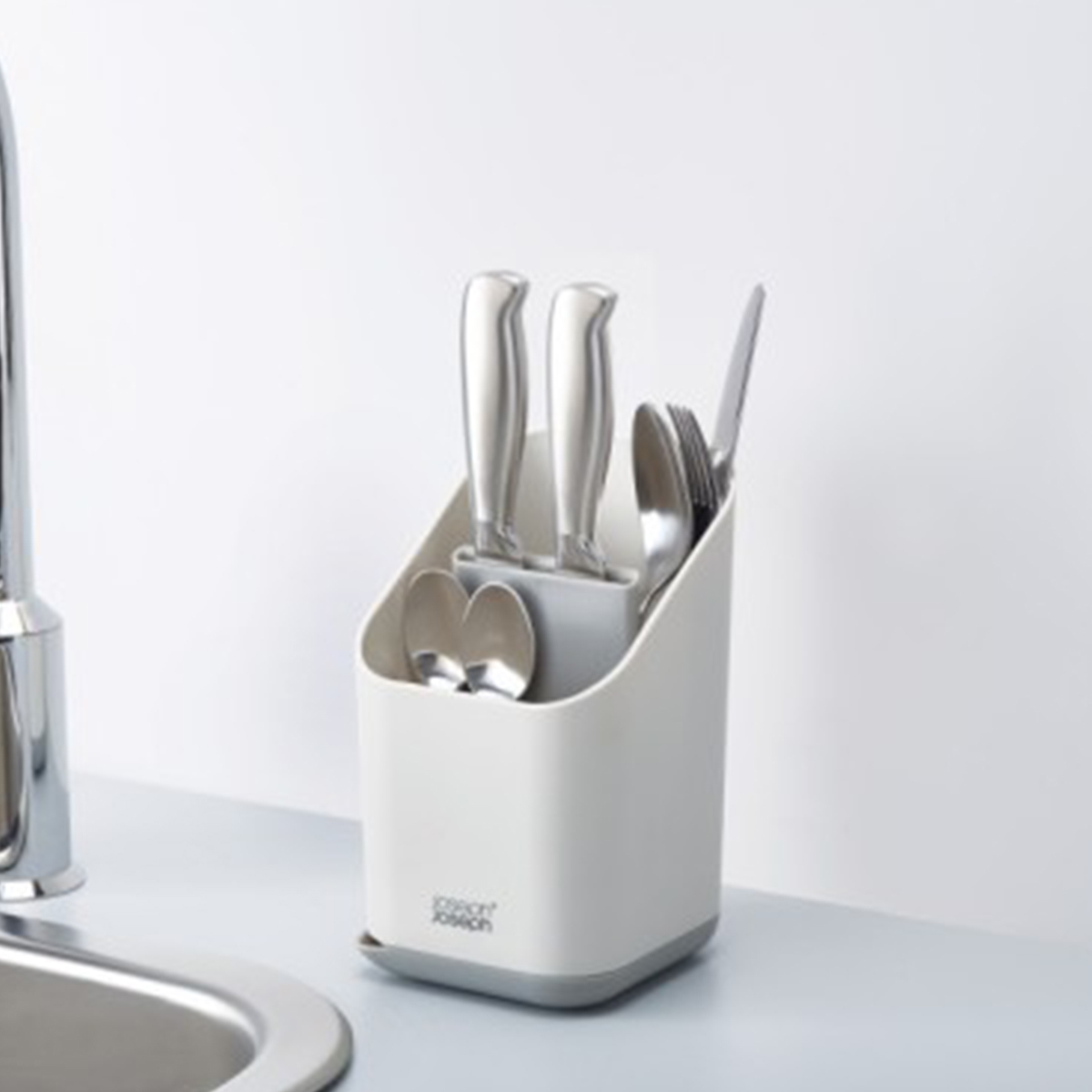 Gelince Haber VerJoseph Joseph'in bu akıllı çatal bıçak süzgeci, yıkamadan sonra keskin bıçakları ve bıçak ağızlarını güvenli bir şekilde boşaltmanızı sağlayan dar bir yuvaya ve diğer çatal bıçak takımları ve mutfak eşyaları için iki büyük bölmeye sahiptir.