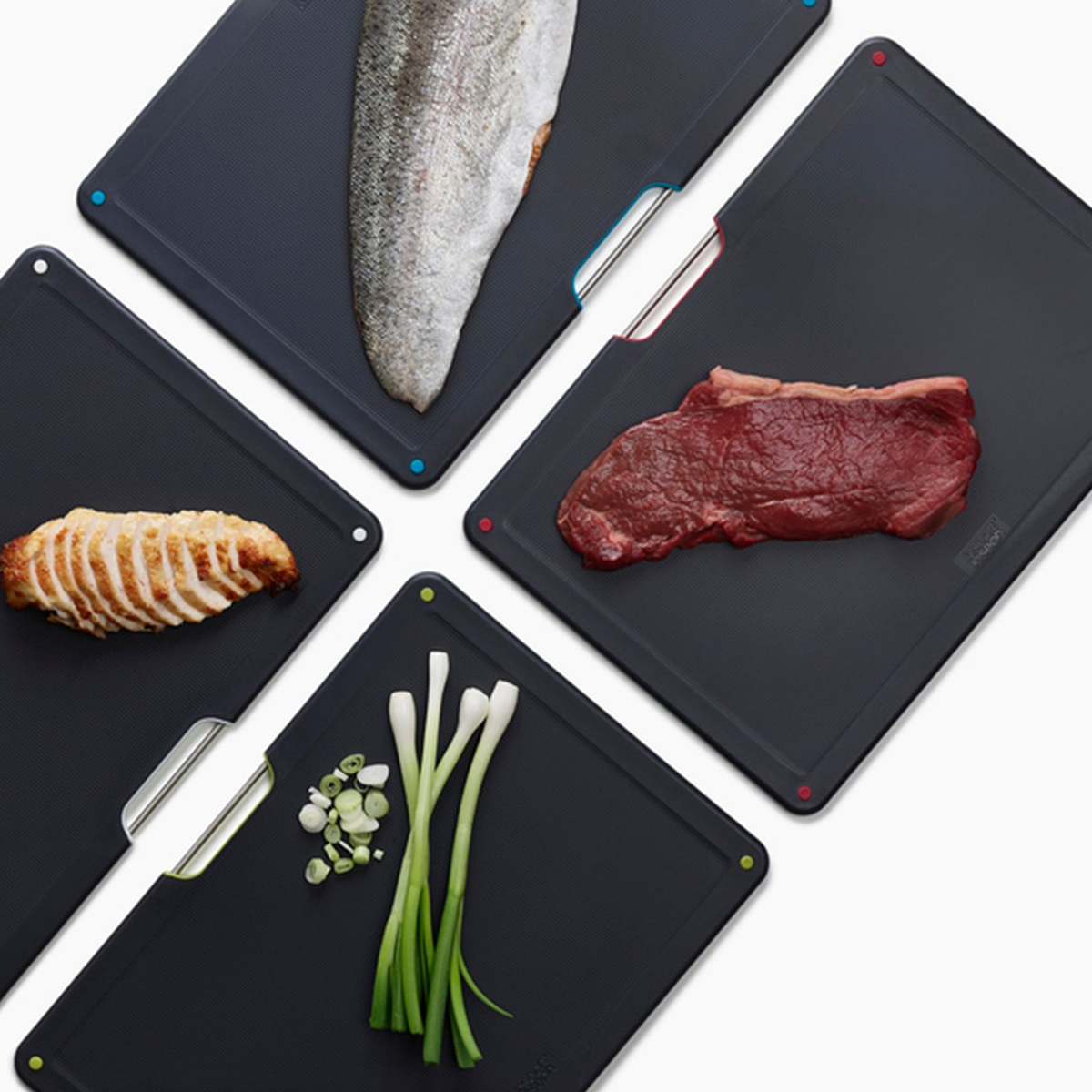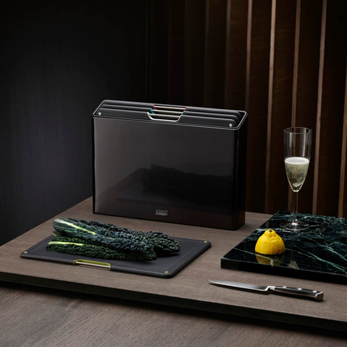 Gelince Haber VerBu muhteşem set, dört büyük kesme tahtasını muhafaza eden ve tezgahınızda gerçek bir fark yaratan ince bir kasaya sahiptir.