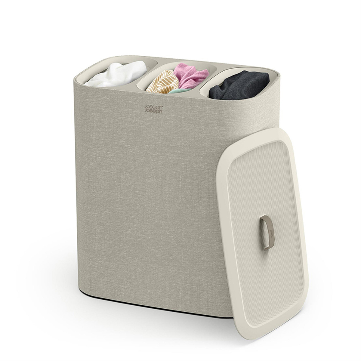 Joseph Joseph 3 Bölmeli Çamaşır Sepeti, her odaya mükemmel uyum sağlayan elegant Ekru renk seçeneğiyle dikkat çeker. Şık ve modern tasarımıyla evinizin dekorasyonuna zarif bir dokunuş ekler.
