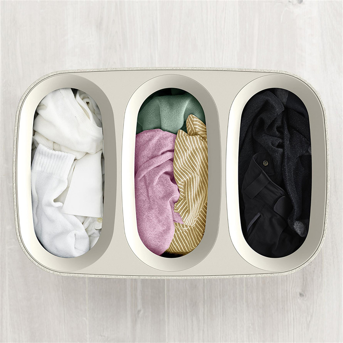 Giysilerinizi farklı kategorilere ayırmak artık daha kolay. Üç ayrı bölme sayesinde renkli, beyaz ve hassas giysilerinizi ayrı ayrı toplayabilirsiniz. Bu da çamaşır yıkarken zaman ve enerji tasarrufu sağlar.