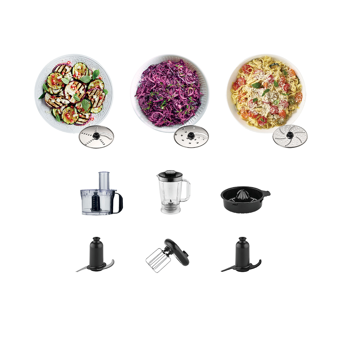 Kenwood'un orijinal hepsi bir arada sistemi ile doğrayabilir, rendeleyebilir, dilimleyebilir, harmanlayabilir, yoğurabilir, çırpabilir ve hatta suyunu sıkabilirsiniz. Hepsini tek bir tabanla yapın, zamandan ve yerden tasarruf edin.