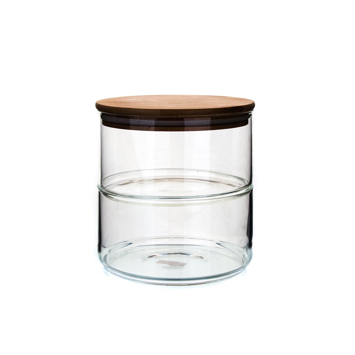 Klt Cam Kavanoz 2 Katlı Ahşap Kapaklı Büyük