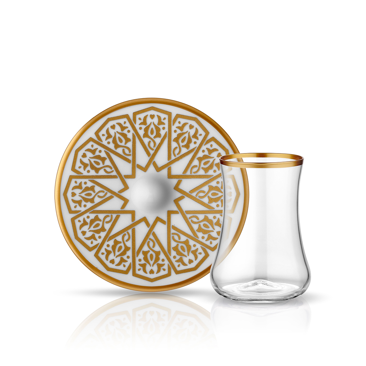 Gelince Haber VerTabaklarında bulunan desenler, berrak ve ince camdan üretilen bardakla Dervish çay setlerinde buluşuyor.
