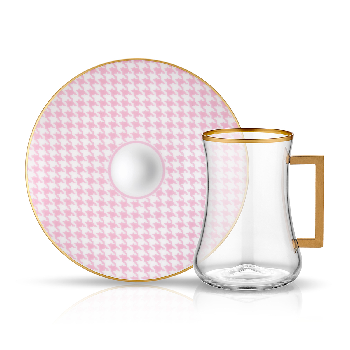 Tabaklarında bulunan desenler, berrak ve ince camdan üretilen bardakla çay setlerinde buluşuyor.