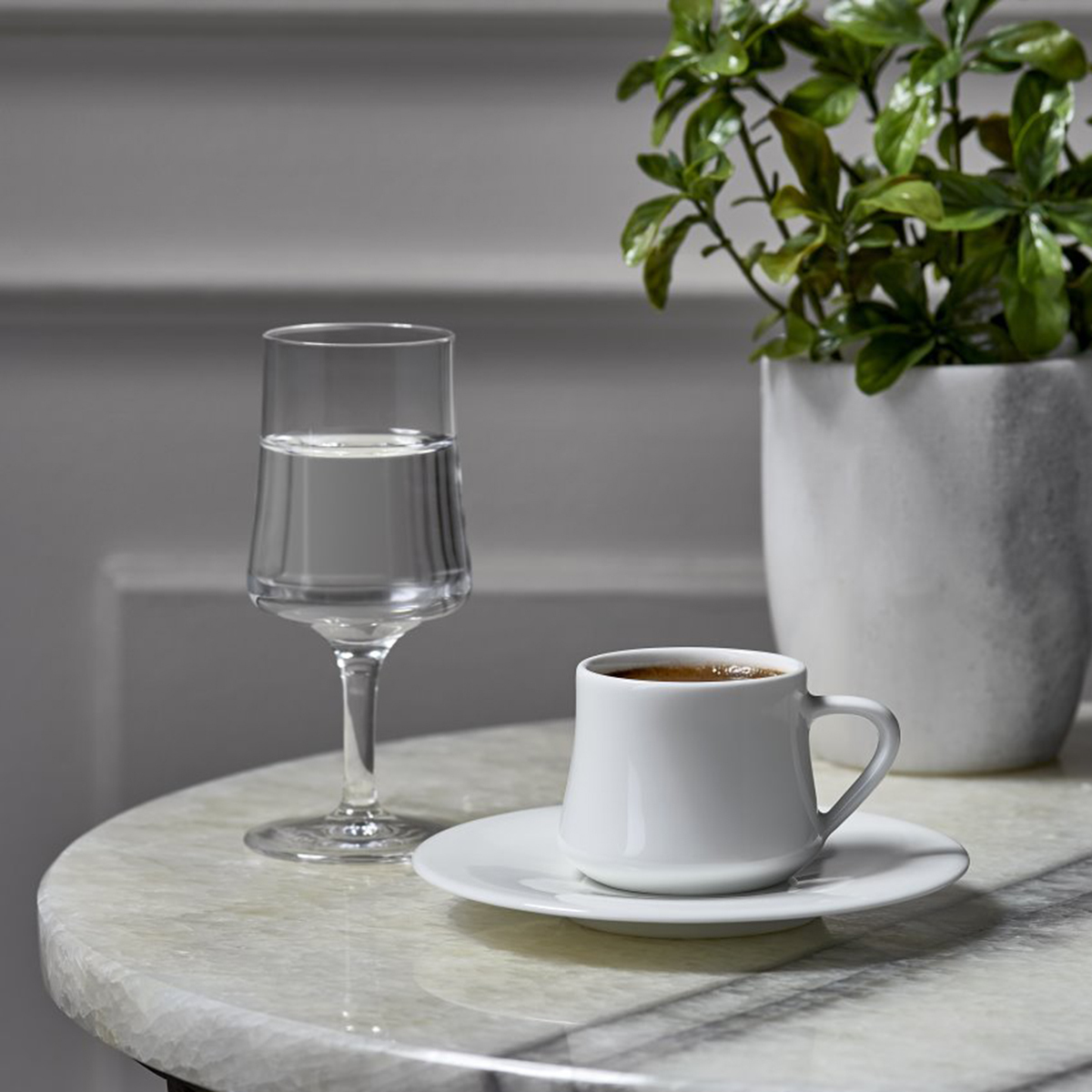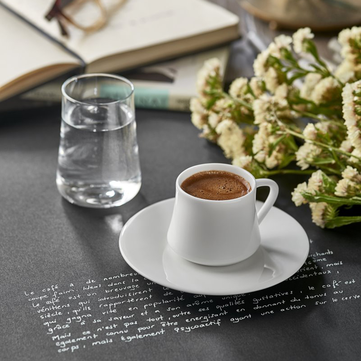 Sert porselene oranla Bone China, kahve fincan takımı ışıltılı bir renk verir. Zarif renkleri, hafifliği, ve narin bileşenleriyle değerli bir malzeme olan Bone China Koleksiyon kahve fincan takımlarının ana malzemesidir.