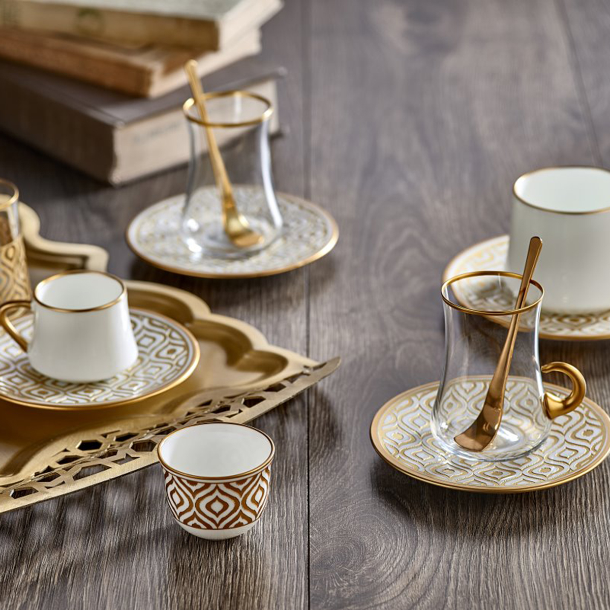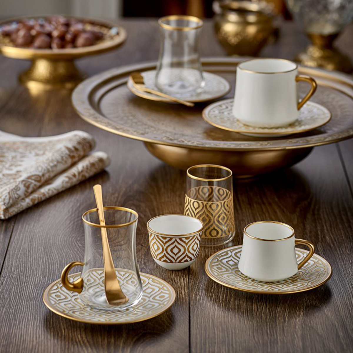 Gelince Haber VerMisafir ağırlamaktan zevk alıyorsanız ve vazgeçemediğiniz ikramlar arasında kahve yer alıyorsa; bir parça da sanat ve şık görünümü tercih ediyorsanız Sufi Türk Kahvesi Fincanı Takımı 6’lı İkat Altın tercih etmeniz size ayrı bir haz verecektir. Kahve tabağı ortasında bulunan tümsek sayesinde kahve bardağı devrilme olasılığını en aza indirgemiştir.