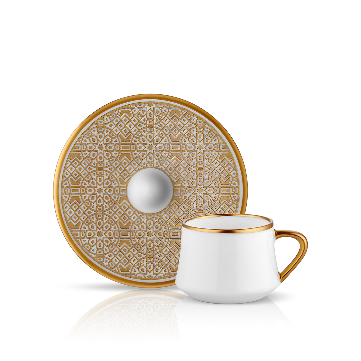 Gelince Haber VerMisafir ağırlamaktan zevk alıyorsanız ve vazgeçemediğiniz ikramlar arasında kahve yer alıyorsa; bir parça da sanat ve şık görünümü tercih ediyorsanız Sufi Türk Kahvesi Fincanı Takımı 6’lı Selçuklu Altın tercih etmeniz size ayrı bir haz verecektir. Kahve tabağı ortasında bulunan tümsek sayesinde kahve bardağı devrilme olasılığını en aza indirgemiştir.