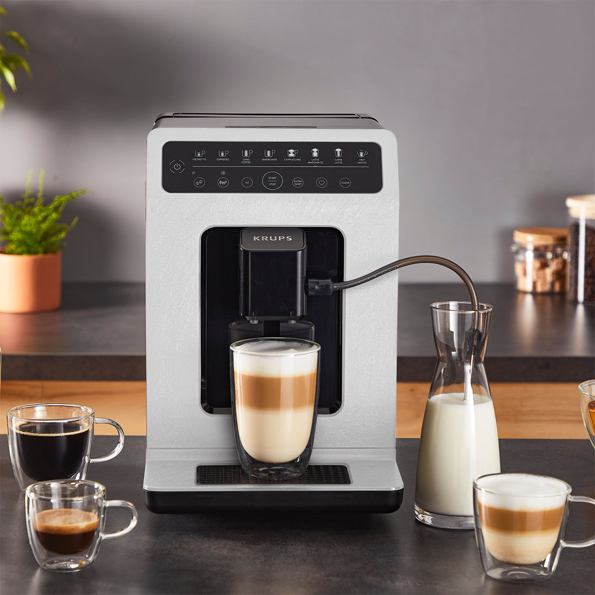 Tek dokunuşlu tarifle yepyeni bir kahve dünyasını keşfedin! Sert ristretto, yoğun espresso, sütlü Cappuccino, kremalı latte macchiato ve daha fazlası arasından seçim yapın.
