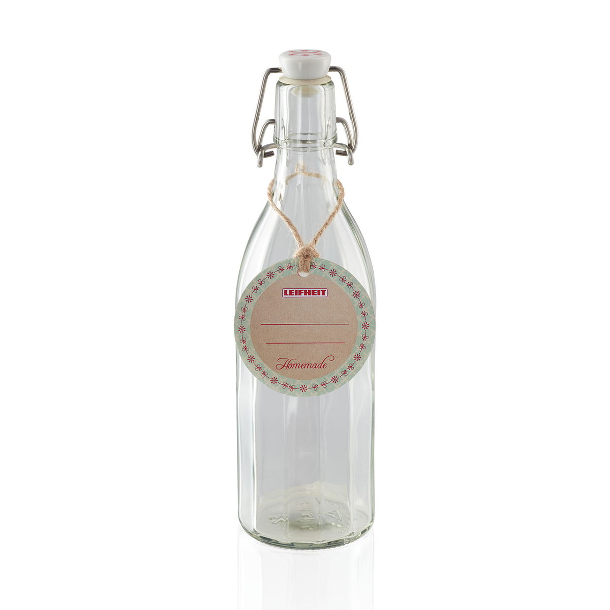 Leifheit cam şişeler, yüksek kaliteli faset kesimiyle her sofra düzenini zenginleştirir ve şık tel klipsli kapağıyla gerçekten göz alıcıdır.