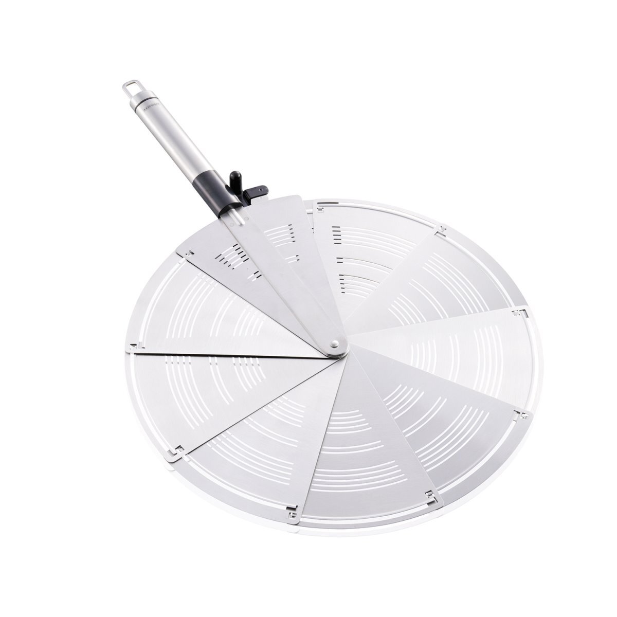 Gelince Haber VerLeifheit'in bu sıçrama siperi bir fan gibi açılabilir ve kullanımdan sonra çatal-bıçak çekmecesinde kolayca saklanabilir. Tavayı kapatırken, kilitlenebilir sıçrama koruması kısmen açık bırakılarak yemeğinizi karıştırabilir veya kontrol edebilirsiniz. Buhar yarıkları, buharlaşan suyun otomatik olarak çıkmasını sağlar. Paslanmaz çelik ve siyah plastiğin kombinasyonu sıçrama korumasına harika bir görünüm kazandırır. Aynı zamanda kullanışlı bir askı deliğine sahiptir. Teknik Özellikler Renk: Grey Malzeme: Paslanmaz çelik ve plastik. Katlanabilir Buhar yarıkları ve askı deliği ile birlikte.